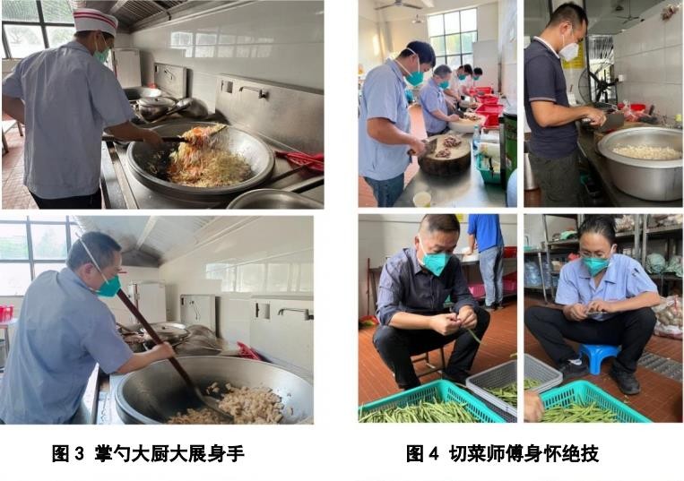 秉承自愿原則,在做好個(gè)人疫情防護(hù)的前提下,住宿員工自告奮勇投身于疫情防控工作當(dāng)中,組成配餐小組在疫情防控工作專班的帶領(lǐng)下各顯神通,在封控期間上演了一場“舌尖上的日東”。配餐小組分工明確、配合默契,洗菜的洗菜、切菜的切菜、掌勺的掌勺、打包的打包,流水線式的作業(yè),行云流水、一氣呵成。鐵鍬般的大鏟子在蘇強(qiáng)和楊久鵬大廚的手中上下翻飛,電光火石間一道道美味出鍋了。配菜師傅刀工了得,一頓操作后,片是片、塊是塊、條是條,整齊碼在菜案子上,看來都沒少做飯呀!打包師傅手中的飯鏟就是稱,菜品和米飯分配的那叫一個(gè)均勻,松軟可口的大米飯乖乖地臥倒在飯盒里。讓我們一塊來看看各位大廚為大家?guī)砹四男┟牢栋桑袌D有真相,嘎嘎香!