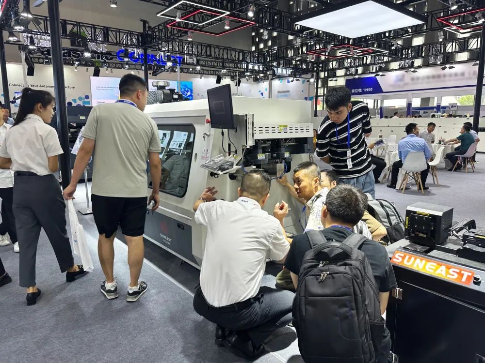 日東IC貼合機(jī)在展會(huì)精心打造的“SiP 及先進(jìn)封裝生產(chǎn)示范展示線”上精彩亮相,設(shè)備以高精度、高效率、高穩(wěn)定性的特點(diǎn)吸引了觀眾駐足觀看、了解。