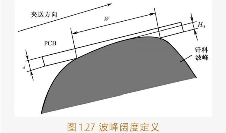 ①定義:當(dāng)波峰高度處于正常作高度Ho(如7~8mm),PCB(板厚為d)位于其上且壓波峰的深度為2d/3時(shí),沿傳送方向PCB下表面與波峰接蝕的長(zhǎng)度稱(chēng)為波峰的闊度。